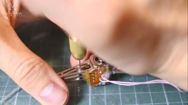 Так что отрезаем лишнее и сверлим отверстия под шатун.