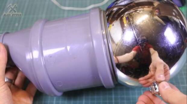 В виде сегмента сферы. Для этого корпус необходимо удлинить муфтой 110 на 110 и в качестве диффузора возьмем гигантский елочный шар.